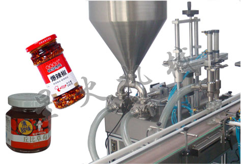 雙頭直線式剁辣椒自動(dòng)灌裝機(jī)是星火公司專(zhuān)門(mén)針對(duì)香辣醬產(chǎn)品進(jìn)行定量灌裝的一種新型灌裝設(shè)備,在使用上分為自動(dòng)香辣醬裝機(jī)和半自動(dòng)香辣醬裝機(jī)兩種,半自動(dòng)雙頭濃醬自 動(dòng)灌裝機(jī)需要人工放瓶、可以選擇AUTO灌裝和FOOT灌裝,然后用我公司臺(tái)式旋蓋機(jī)旋蓋,半自動(dòng)貼標(biāo)機(jī)進(jìn)行貼標(biāo)。自動(dòng)香辣醬灌裝機(jī)一般是配合自動(dòng)旋蓋 機(jī),漿糊貼標(biāo)機(jī)等設(shè)備一起使用從而構(gòu)成一套灌裝流水線。